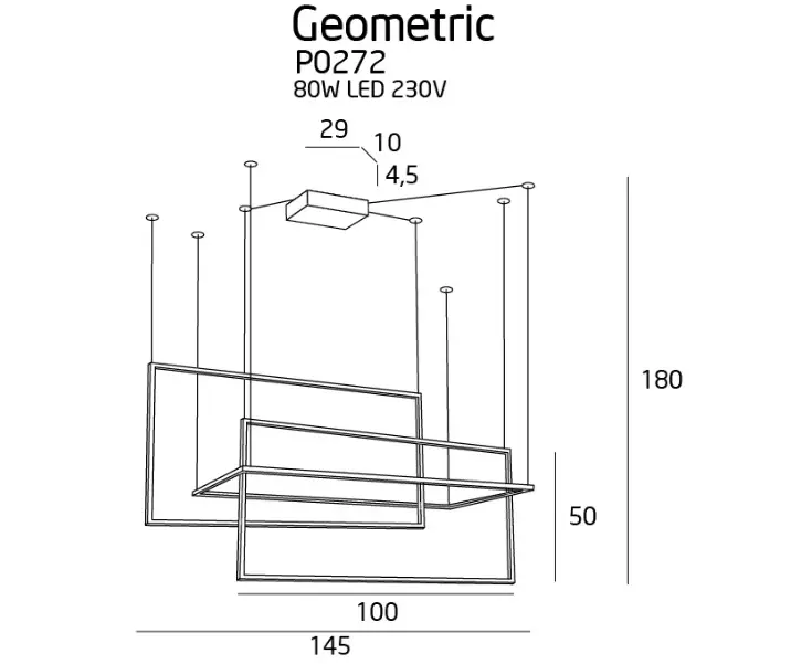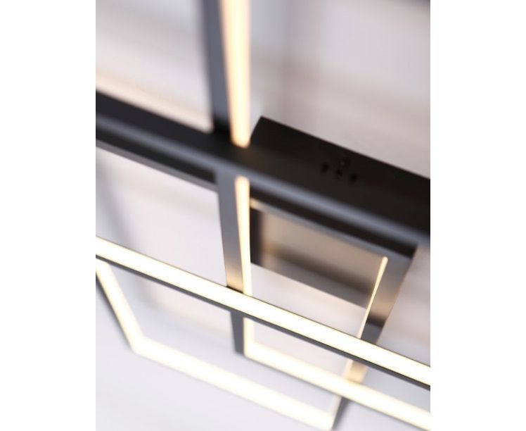 Minimalistyczna, ale odważna i przyciągająca spojrzenie lampa Geometric to doskonały wybór dla każdego miłośnika dobrego designu. Trzy wąskie, aluminiowe, prostokątne ramy nie są połączone, ale przenikają się nawzajem, dzięki czemu, pomimo imponujących rozmiarów, kompozycja stwarza wrażenie lekkości i nie przytłacza przestrzeni. Wewnętrzne krawędzie ram są wypełnione wysokiej jakości listwami led, skrytymi pod mlecznym szkłem akrylowym, co zapewnia długi czas użytkowania i przyjemne, miękkie rozświetlenie. Oprawa Geometric została stworzona z myślą o wnętrzach nowoczesnych i minimalistycznych, jednak będzie zachwycająco prezentować się także jako nowoczesny akcent wystroju w tradycyjnych czy industrialnych przestrzeniach. Aranżację świetlną można uzupełnić o dopasowany kinkiet.