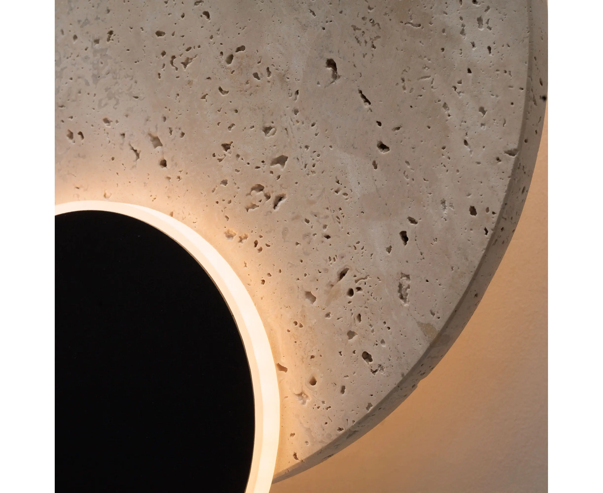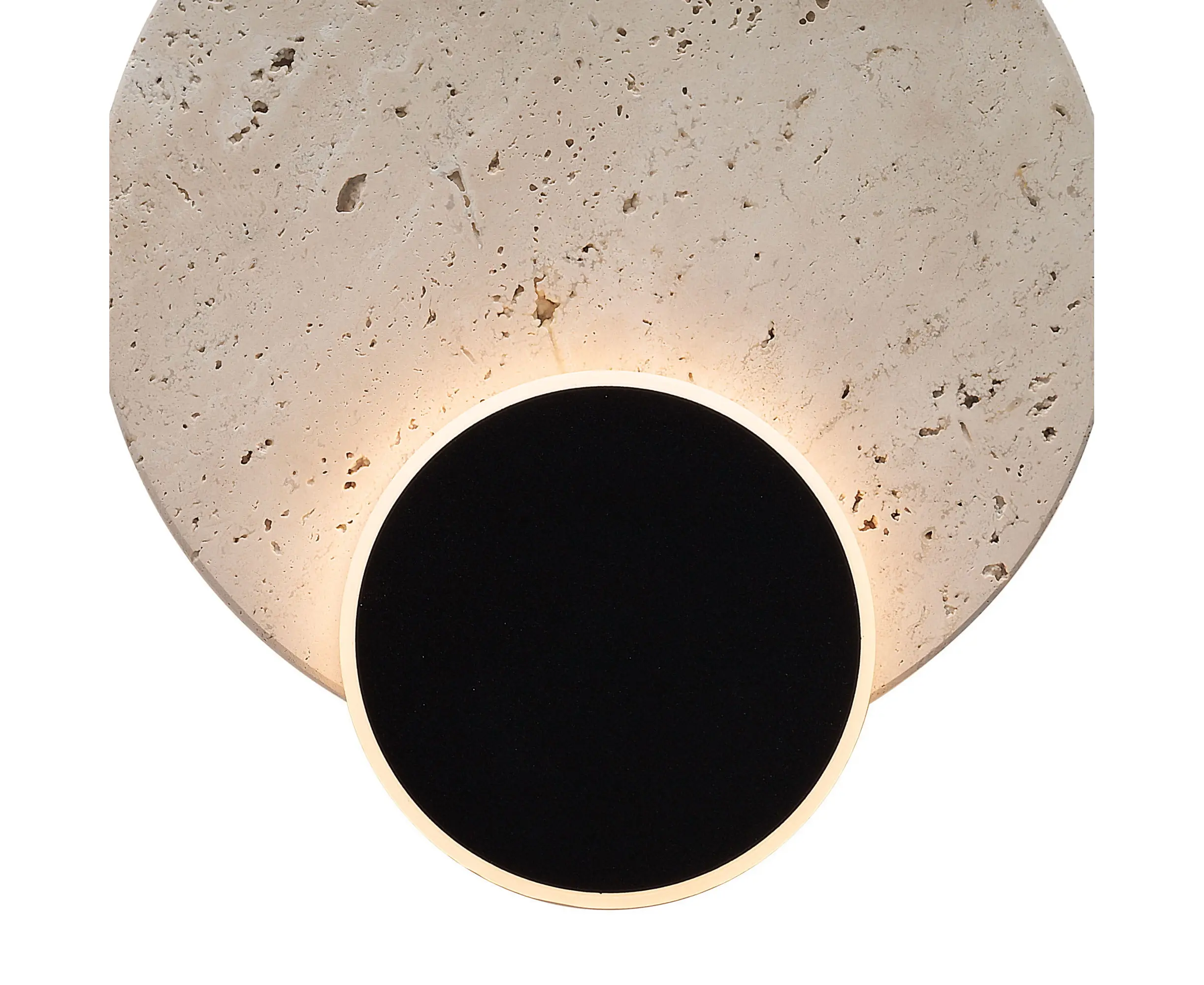 Moc/Power: 14W LED, 530 LM 3000K L: 25 cm, H: 28 cm, D: 5,5 cm Wykończenie/Detail finishing: czarne/black Materiał/Material: stal + kamień naturalny/ iron+natural stone LED w komplecie/LED included