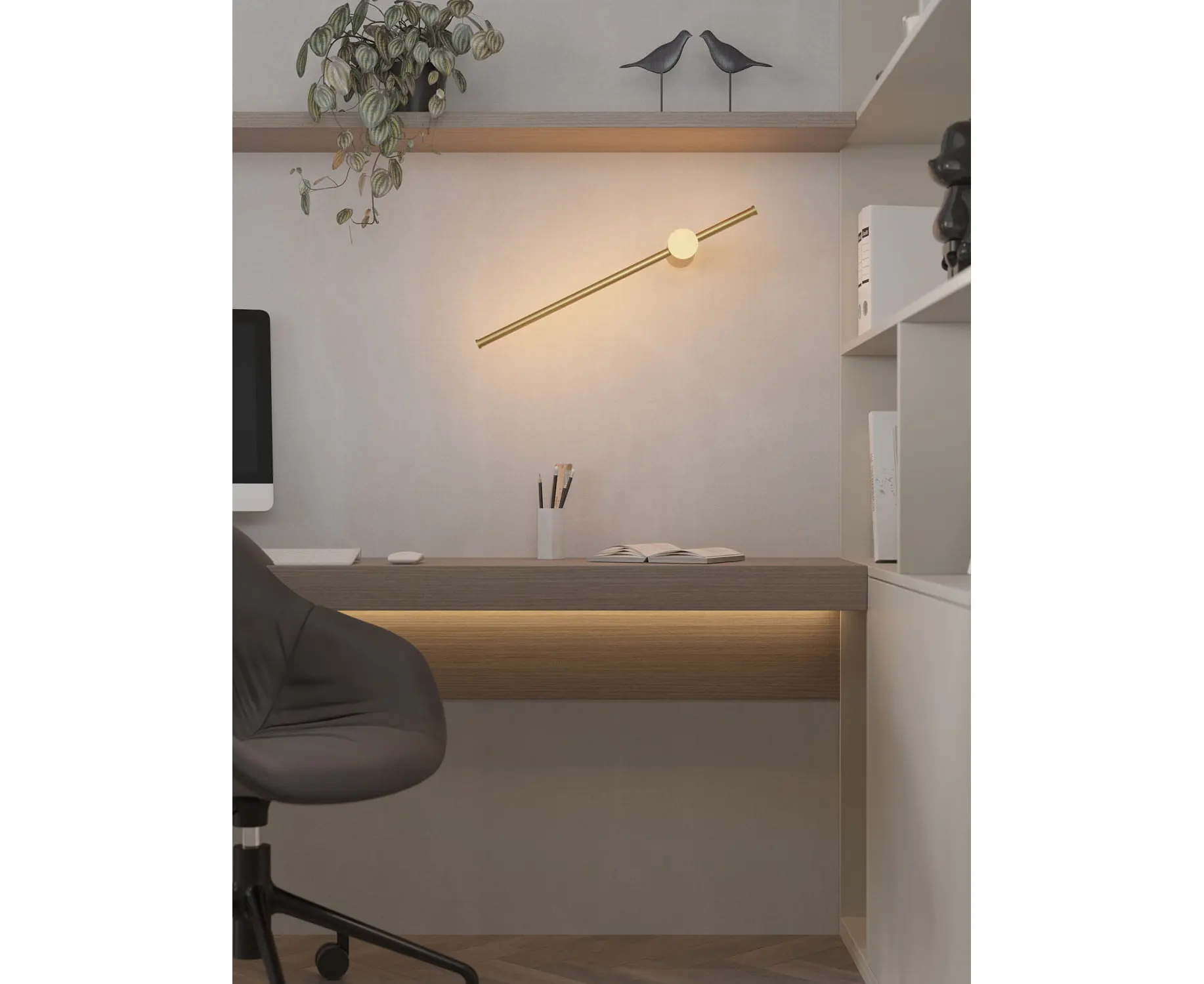 Moc/Power: 9W LED, 200 LM 3000K D: 14,6 cm H: 60 cm Wykończenie/Detail finishing: złote/gold Materiał/Material: metal LED w komplecie/LED included