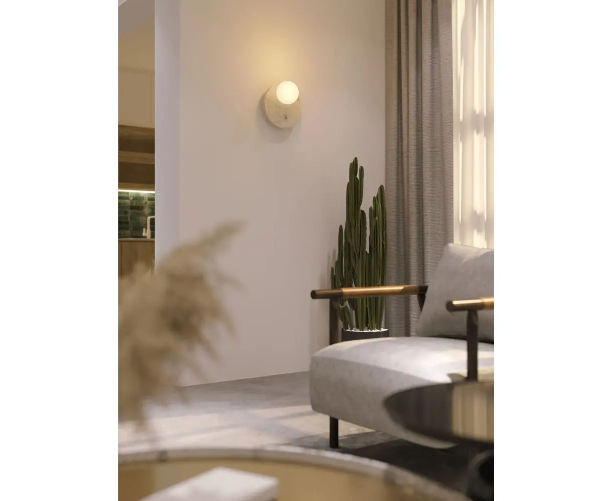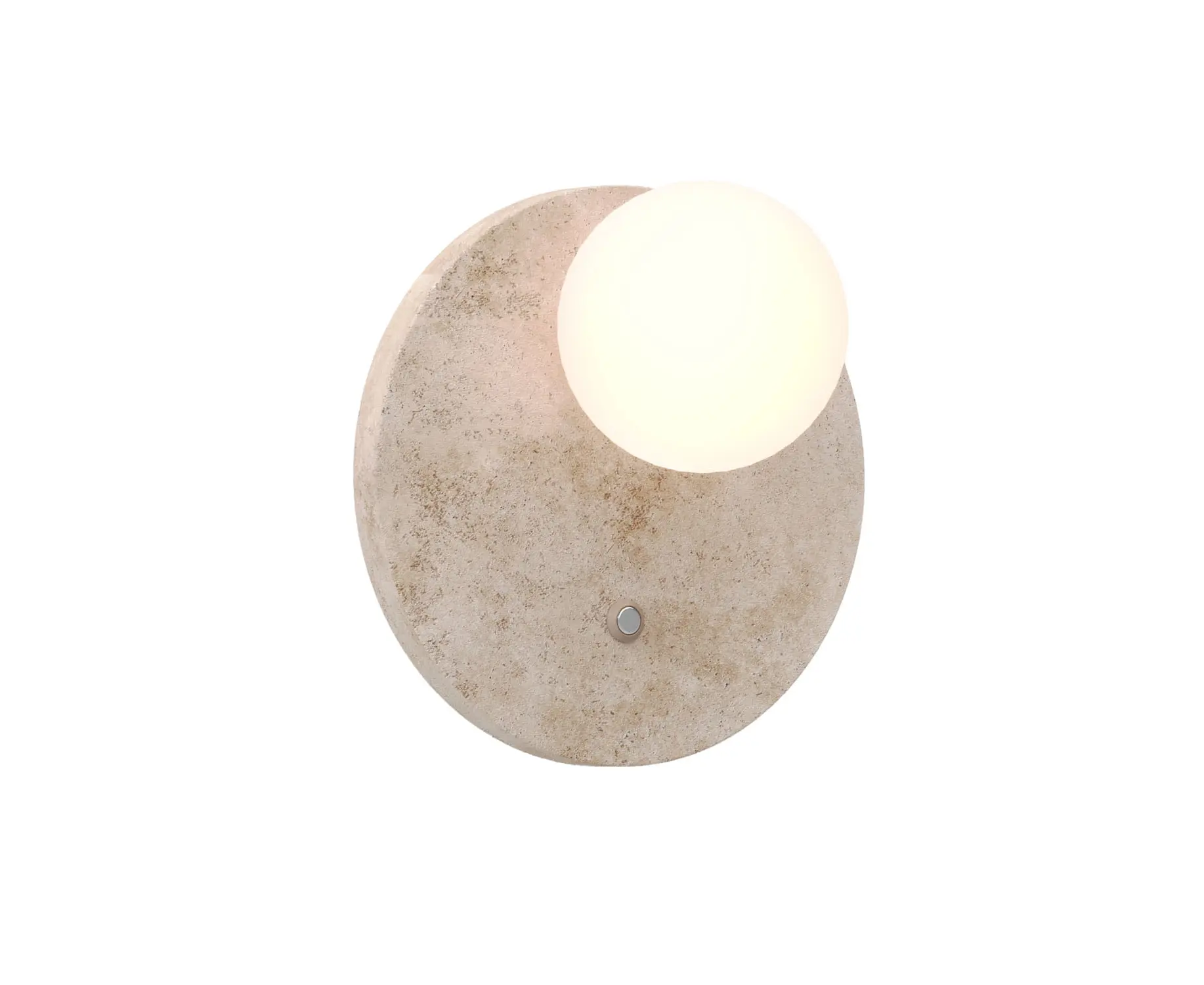 Moc/Power: 1 x 7W G9 230V Ø: 20 cm, D: 15 cm Wykończenie/Detail finishing: kamień naturalny/natural stone Materiał/Material/: trawertyn/travertine Nie zawiera żarówek/bulbs excluded