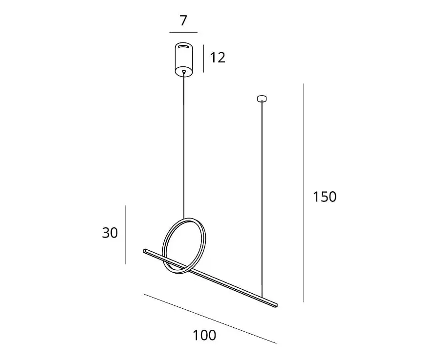 W: 100 cm, D: 30, H: max 150 cm , Ø: 30
