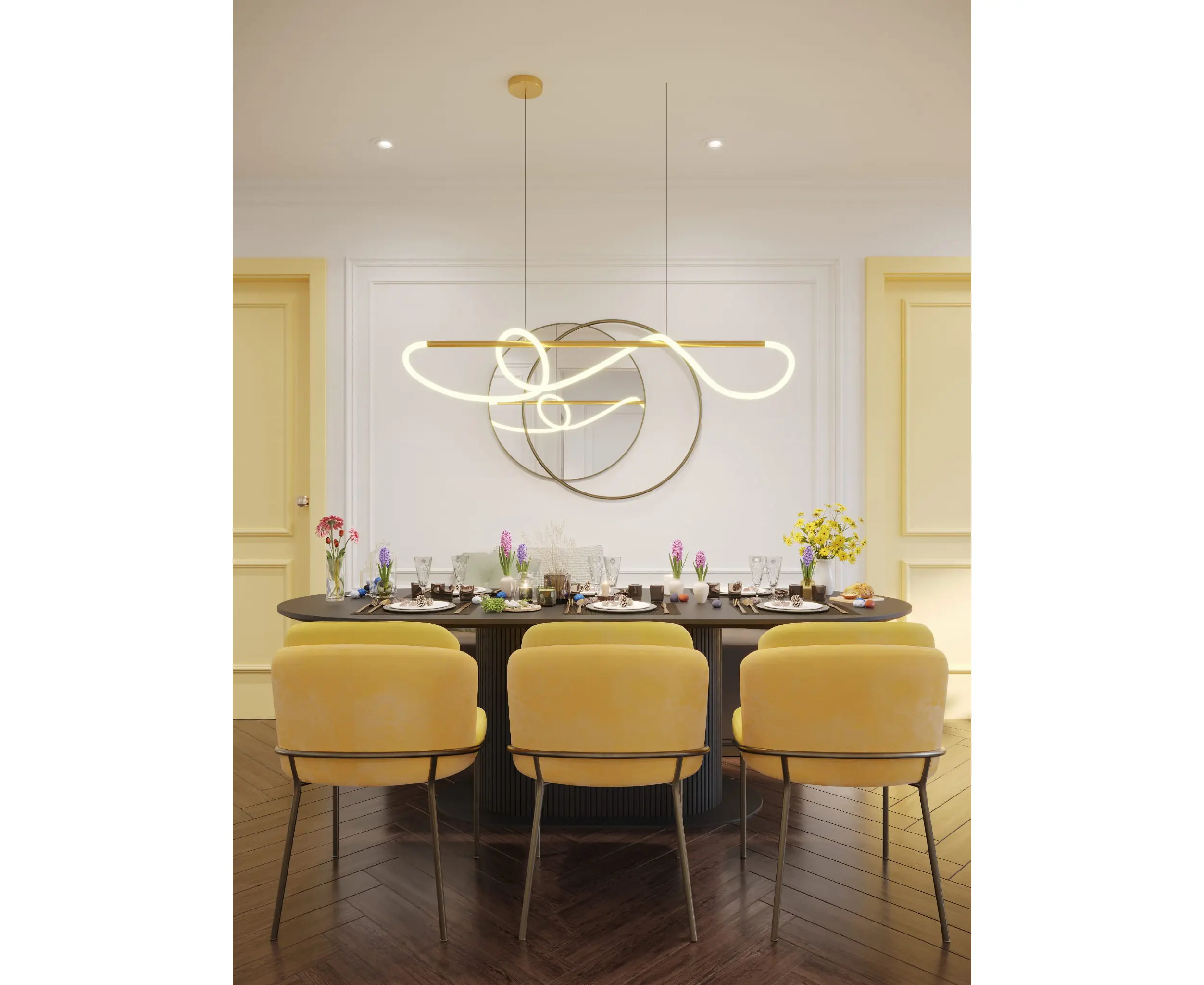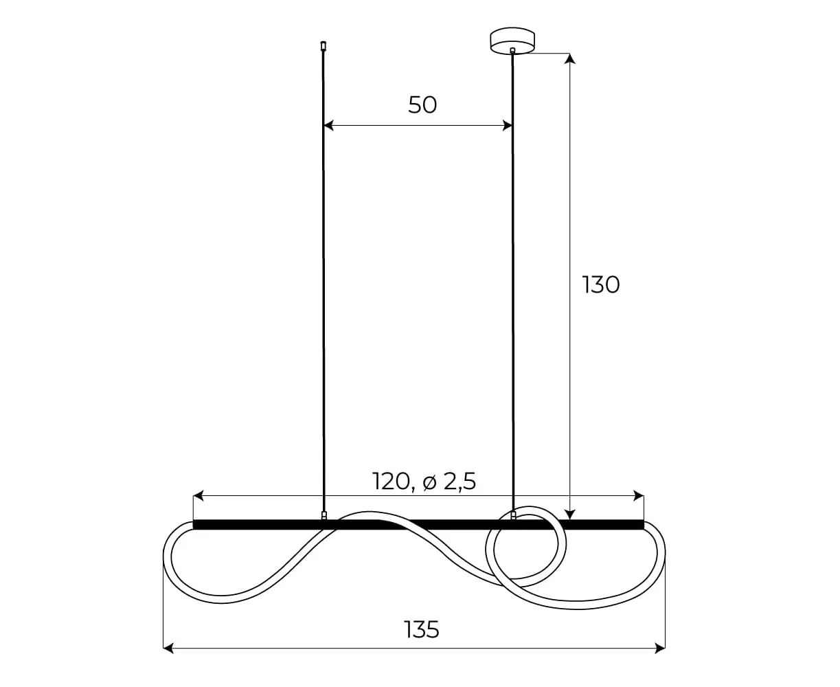 Moc/Power: 30W LED, 1329 LM, CRI 90, 3000K H: 150 cm, W: 120cm Wykończenie/Detail finishing: złote/gold Materiał/Material: metal, silikon/silica Zawiera zasilacz LED /LED driver included