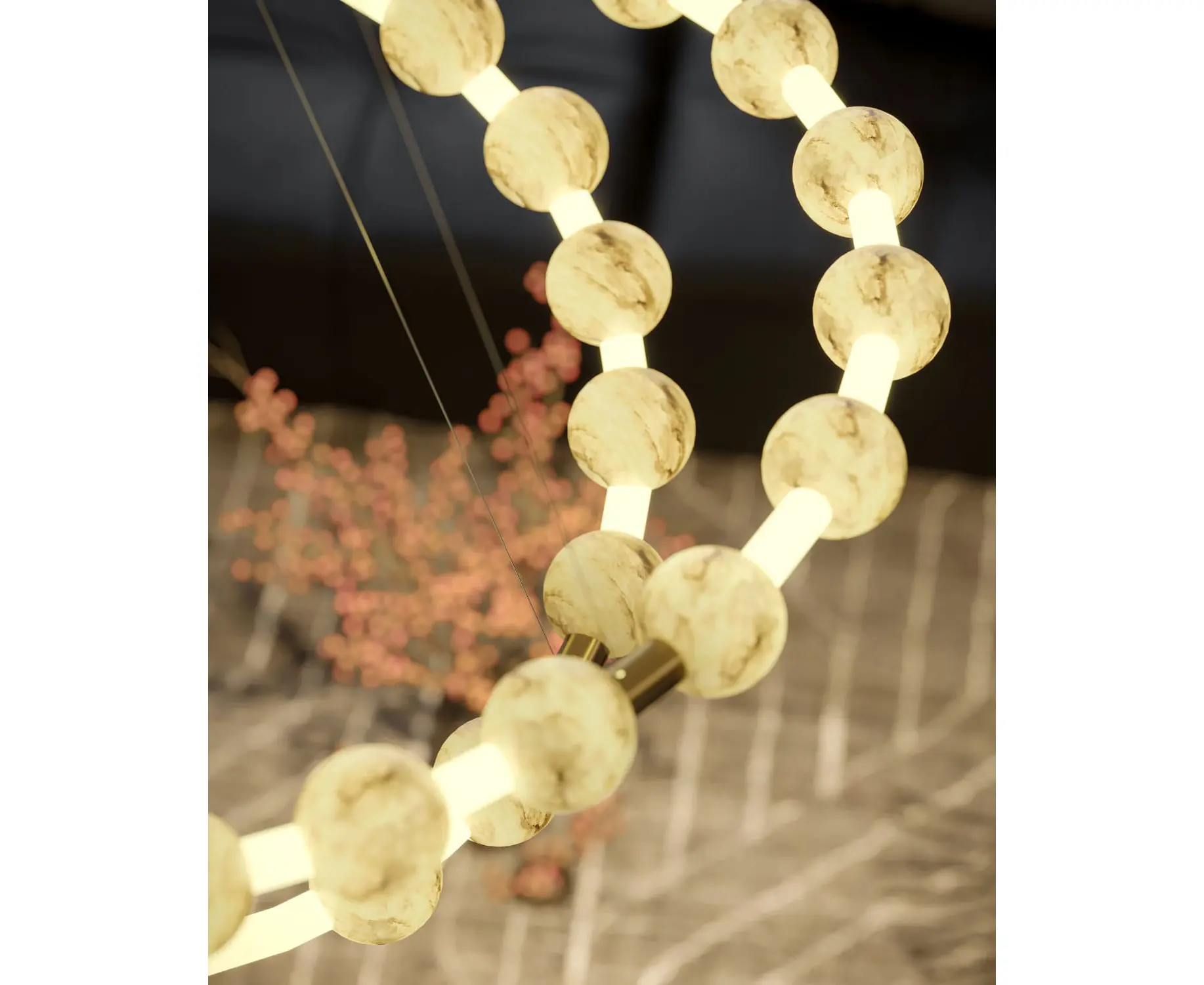Moc/Power: 78 LED, 700 LM 3000K Ø: 80 cm, H: 70cm Wykończenie/Detail finishing: złote/gold Materiał/Material: aluminium + kamień naturalny/ aluminium+natural stone LED w komplecie/LED included