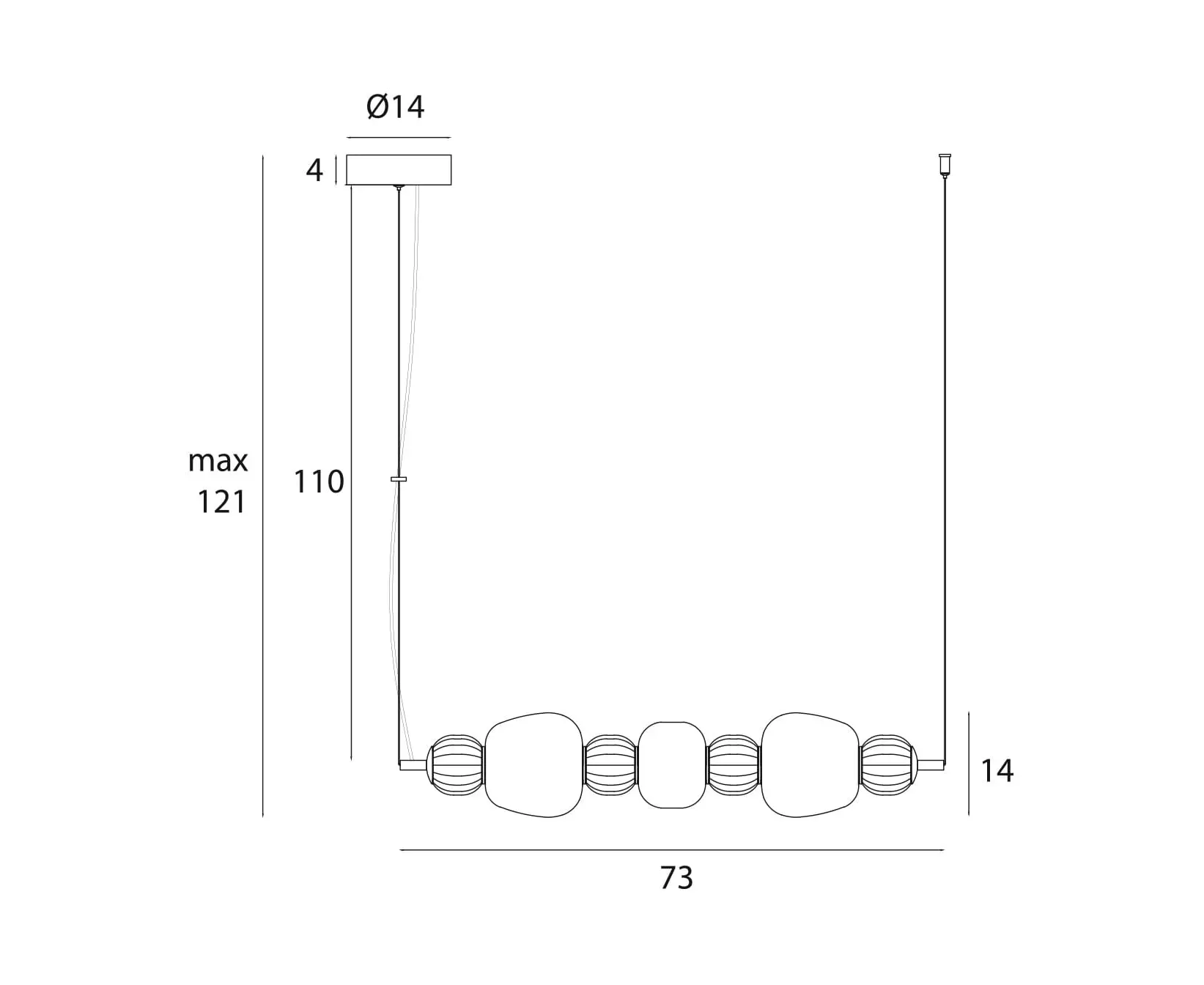 Moc/Power: 28W LED, 1848 LM 3000K L: 73 cm, W: 14 cm H: max 120 cm Wykończenie/Detail finishing: czarne/black Materiał/Material: metal+ szkło/metal + glass LED w komplecie/LED included