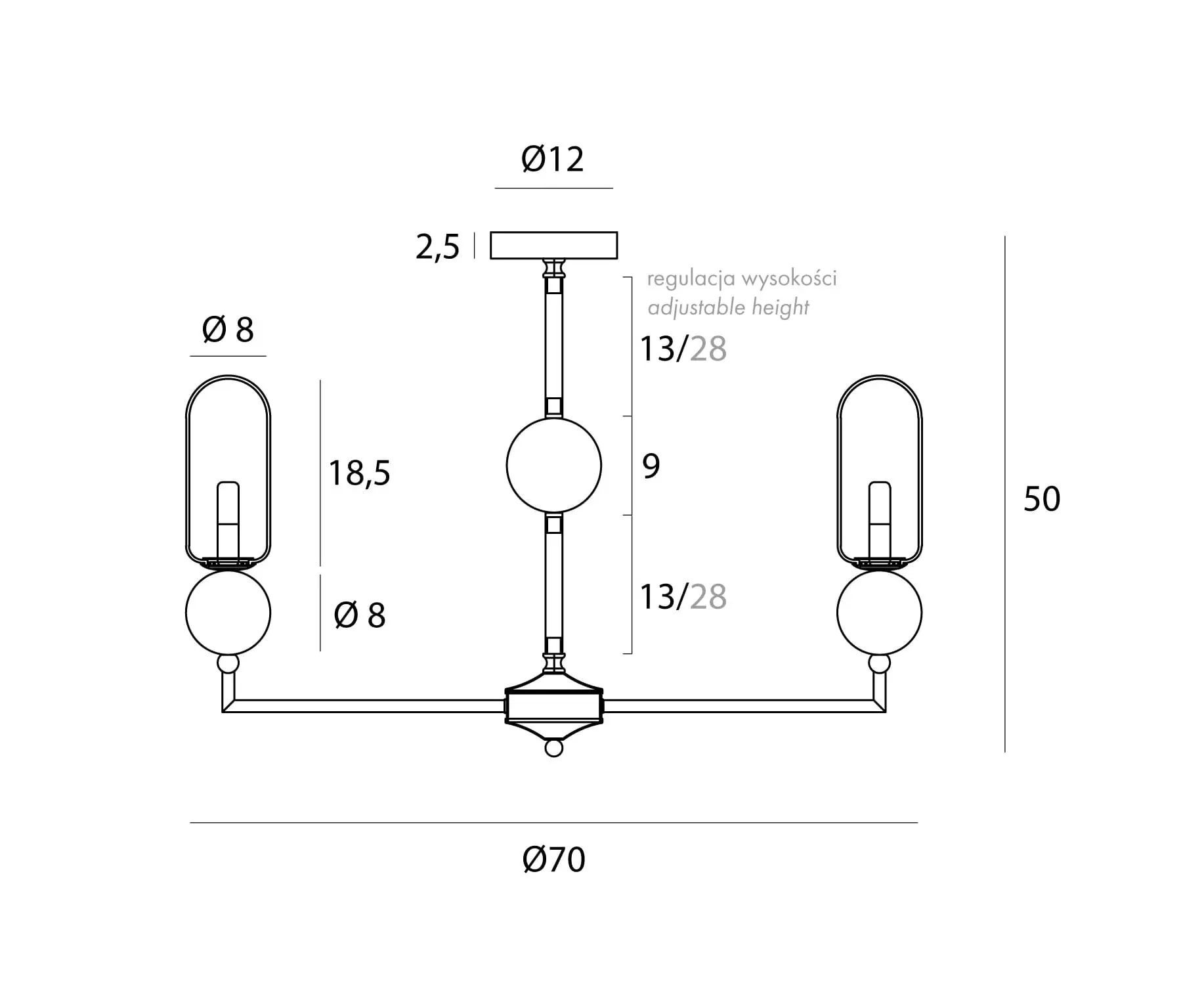 Parametry techniczne lamp wiszących: