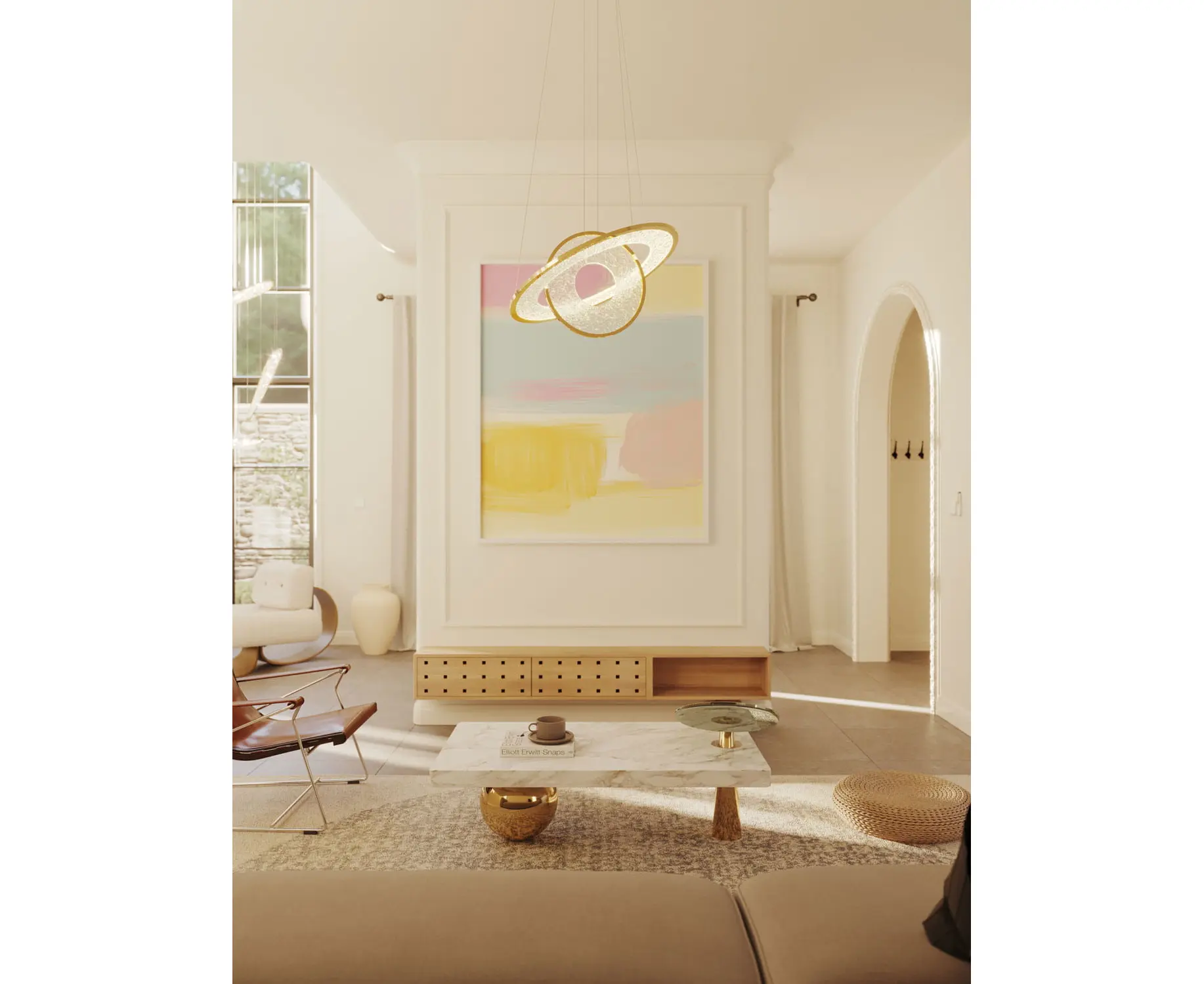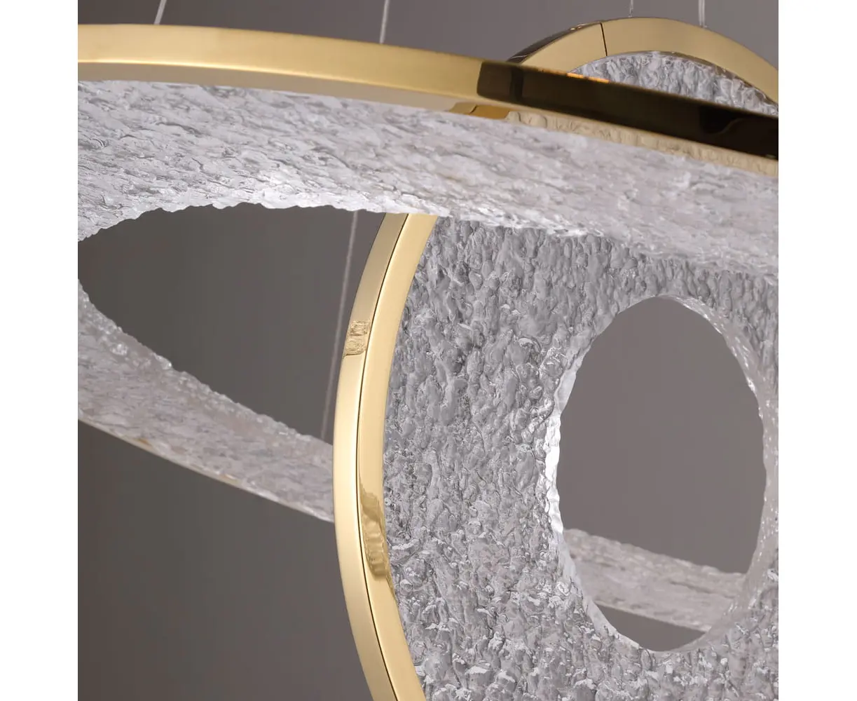 Moc/Power: 45W LED 2889LM, 3000K Ø: 74 cm, H: 180 cm Wykończenie/Detail finishing: złote/gold Materiał/Material/: metal/akryl, metal/acrylic Zawiera zasilacz LED /LED driver included