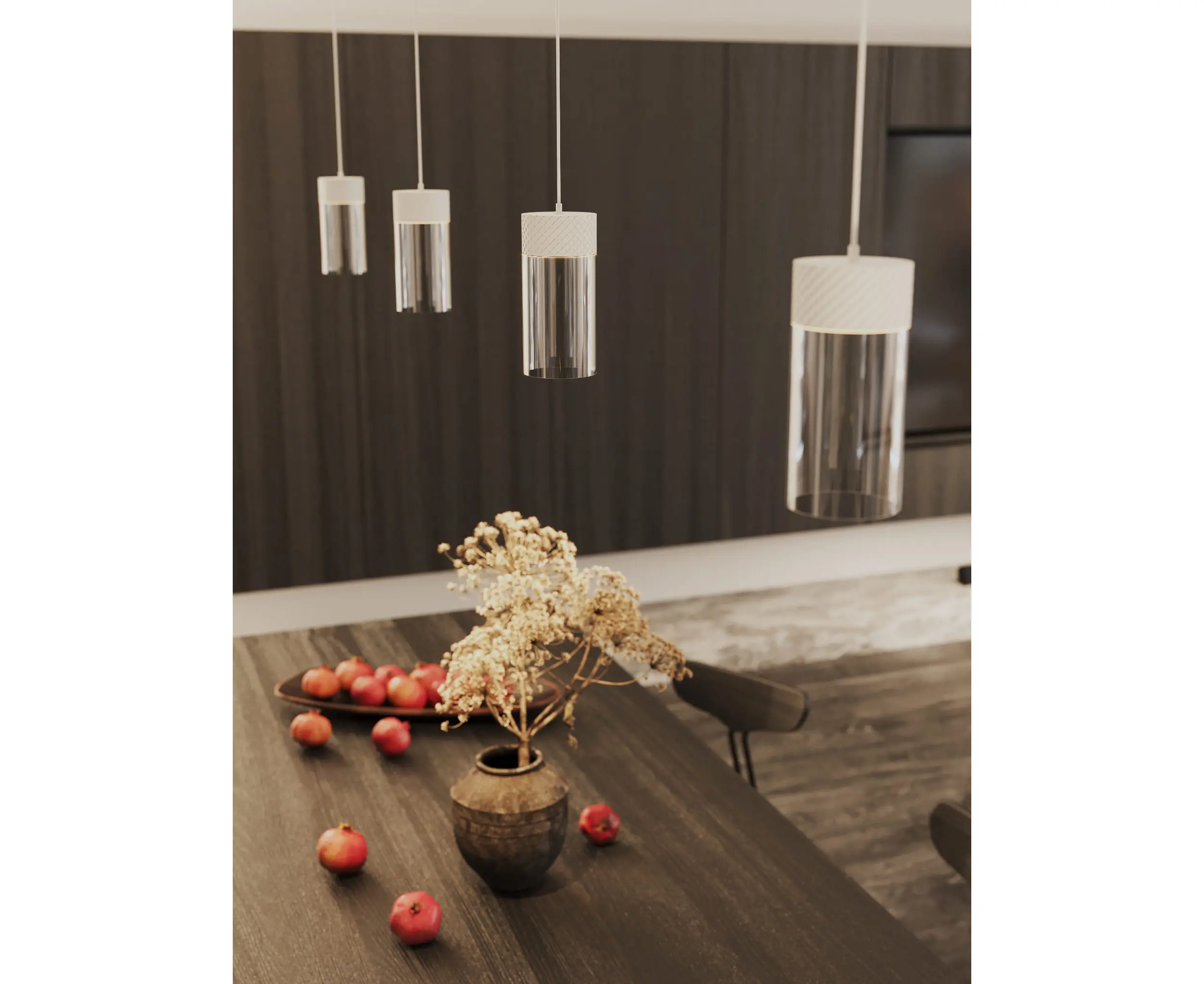 Moc/Power: 7W LED 477LM, 3000K Ø: 7,5 cm, H: 150 cm Wykończenie/Detail finishing: białe/white Materiał/Material/: metal/szkło/metal/glass Zawiera zasilacz LED /LED driver included