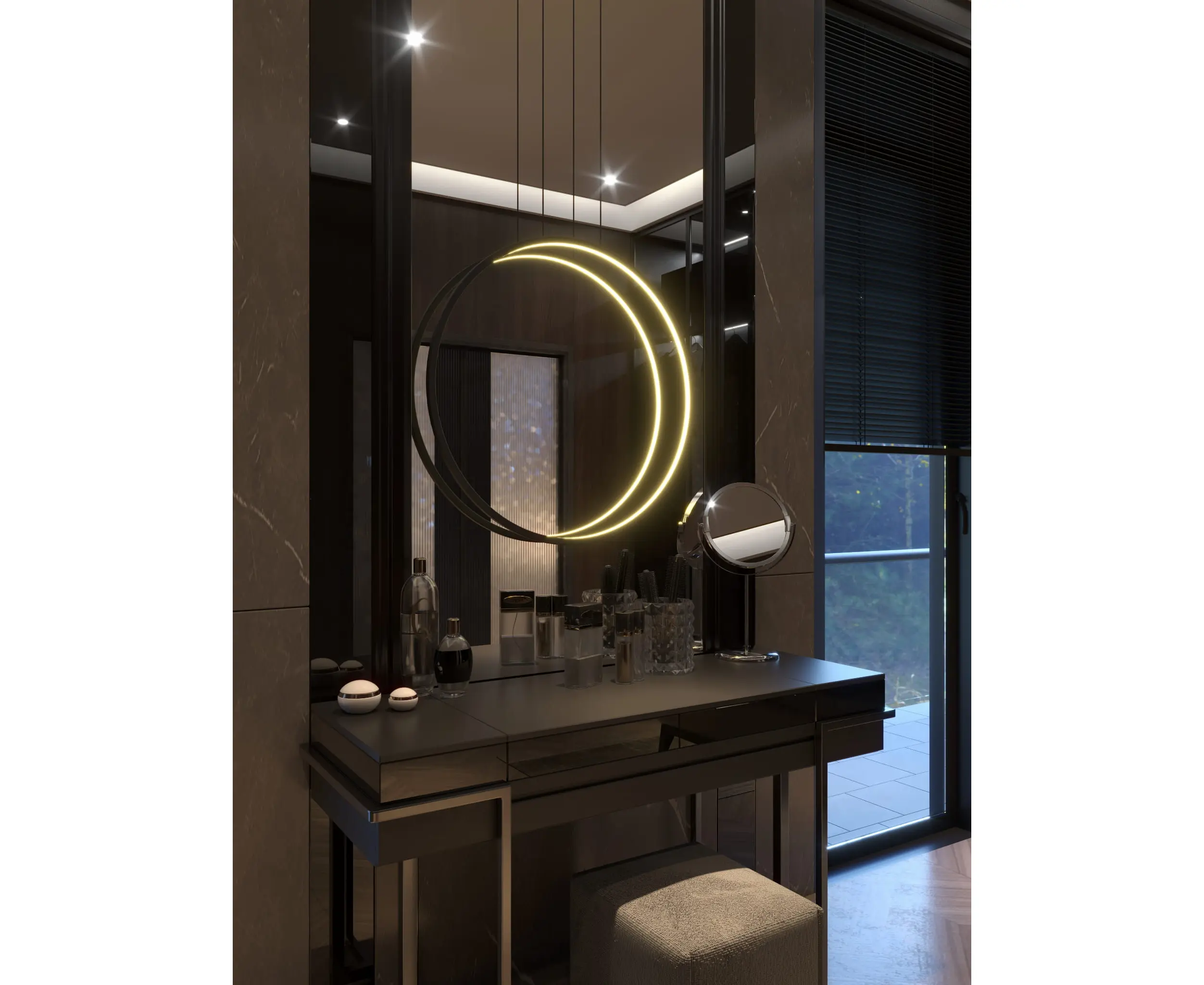 Moc/Power: 22W LED, 1560LM 3000K, IP44 ø: 60cm D:15 cm, H: max 115cm Wykończenie/Detail finishing: czarne/black Materiał/Material: aluminium +tworzywo sztuczne/ aluminum + plastic LED w komplecie/LED included