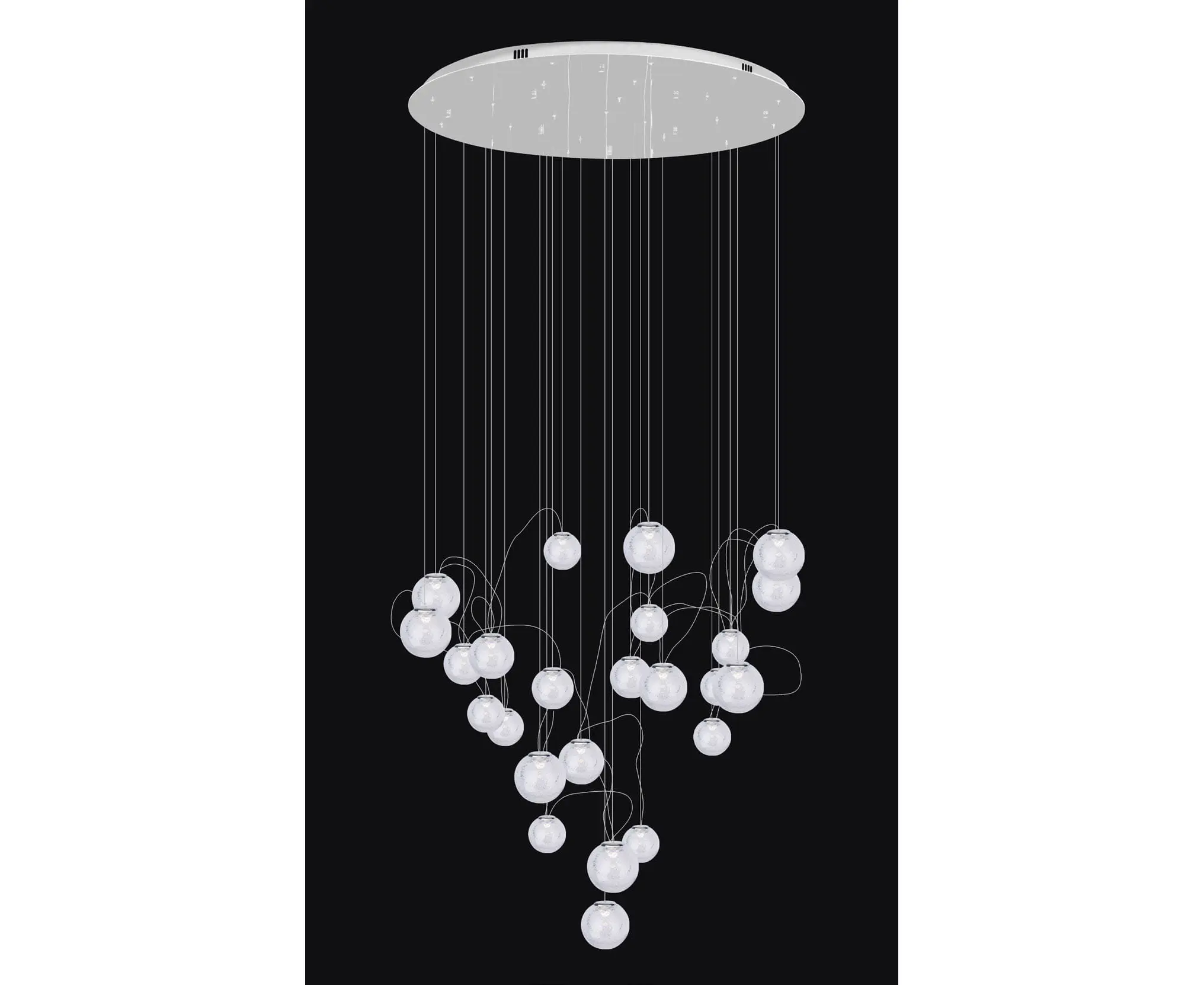 Lampy wiszące Zoe to fantazja na temat szkła, bąbelków i lekkości. Wykonane są ze szklanych lampioników zawieszonych na przewodach o różnej długości, ale do wyboru jest również model z