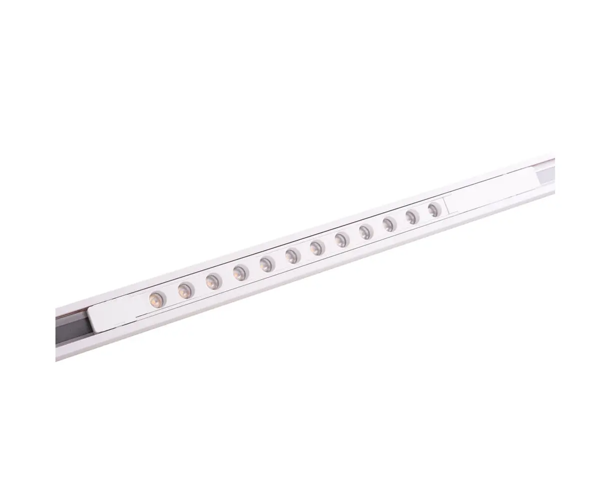Moc: 11,6 W Typ źródła światła: LED Źródło światła: zintegrowane Barwa światła: 3000K (ciepła biel) Strumień świetlny: 972 lm CRI (Ra): 92 Kąt świecenia: 27° Ilość źródeł światła: 12 Ściemnianie: nie Napięcie: 48V DC Wymiary: długość 34 cm, szerokość 1 cm, wysokość 1 cm Materiał: aluminium Wykończenie / kolor: biały Klasa szczelności: IP20
