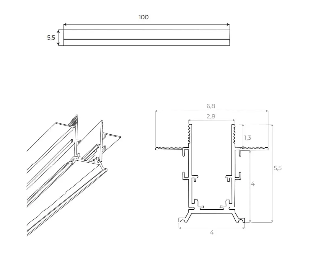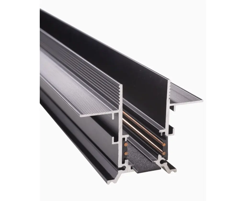 Szyna aluminiowa magnetyczna podtynkowa, wykonana z profilu aluminiowego lakierowanego na czarno L: 100 cm