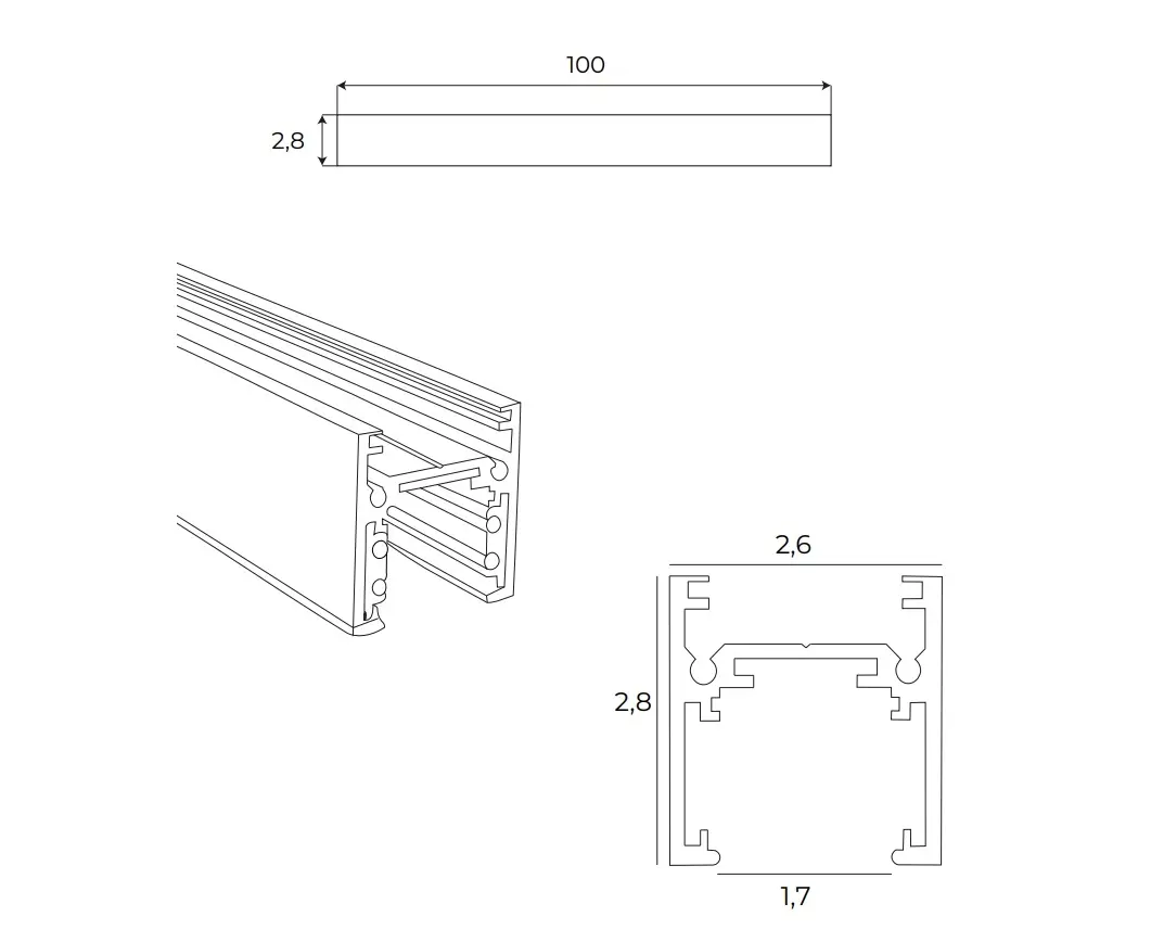 Szyna aluminiowa magnetyczna, natynkowa płytka, wykonana z profilu aluminiowego lakierowanego na czarno L: 100 cm