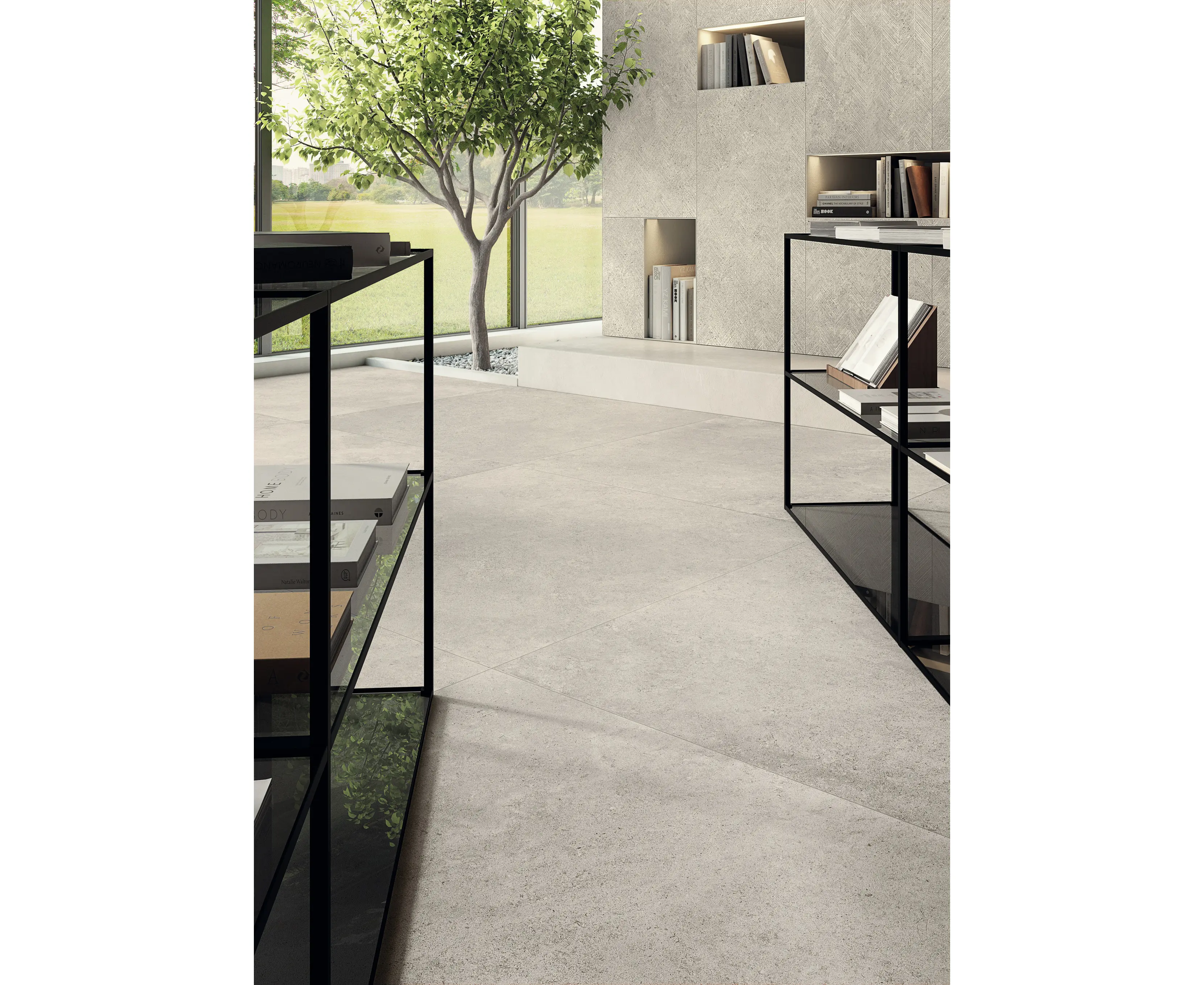 - salonów i open space’ów – duży format 120x120 cm pozwala ograniczyć ilość fug i uzyskać efekt jednolitej, kamiennej tafli na dużych powierzchniach,