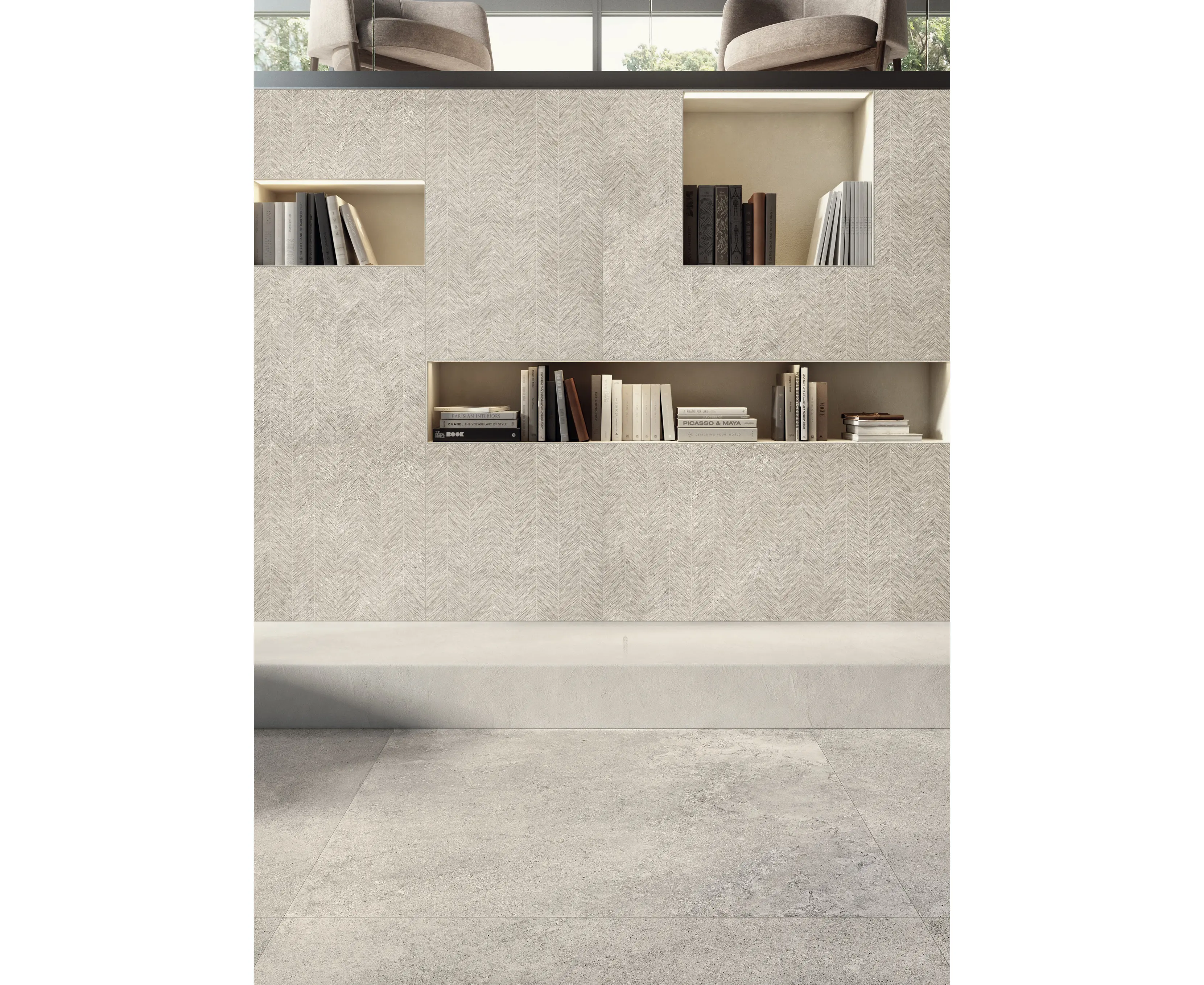 - Efekt naturalnego kamienia – inspiracja wapieniem z regionu Vienne (Limestone + Chauvigny Stone), z delikatną, „piaskową” strukturą}
